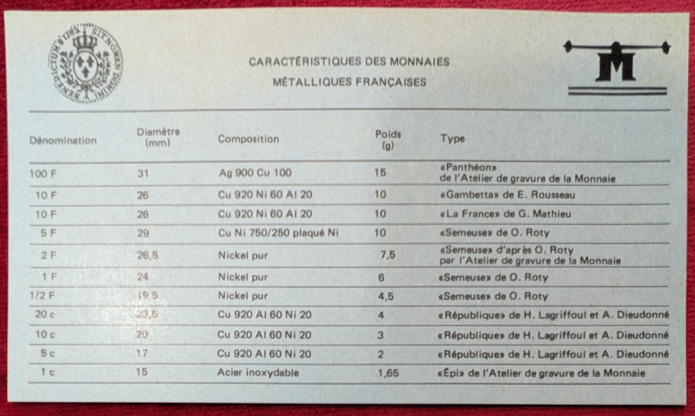 Coffret Francs 1982.FDC. Fleur de Coin.